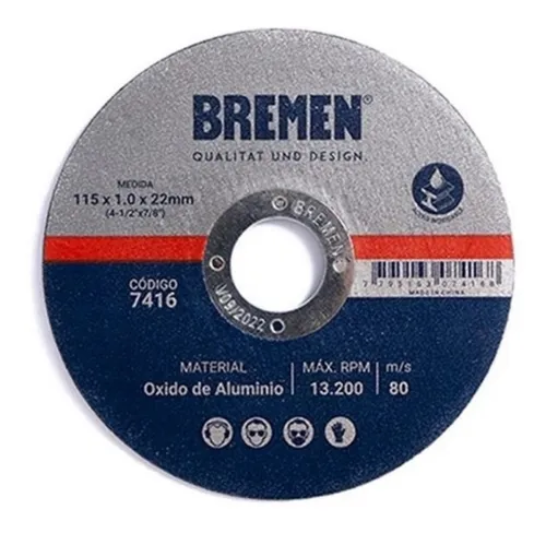 DISCO DE CORTE BREMEN® 4-1/2" (115x1.0x22mm) OX. ALUMINIO [1 unid] 7416