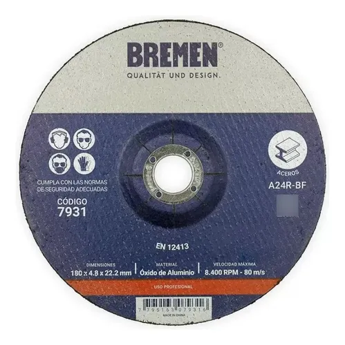 DISCO DE DESBASTE BREMEN® 7" (180 x 4.8X 22,23mm) [1 unid] 7931
